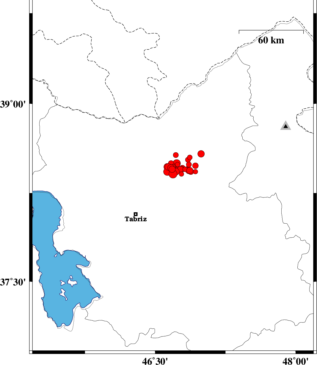 2012/08/25 06:09:46.2 10:39:46.2 38.4546.6714 ML3 Azarbaijan Sharghi Province, 36 km West of Ahar