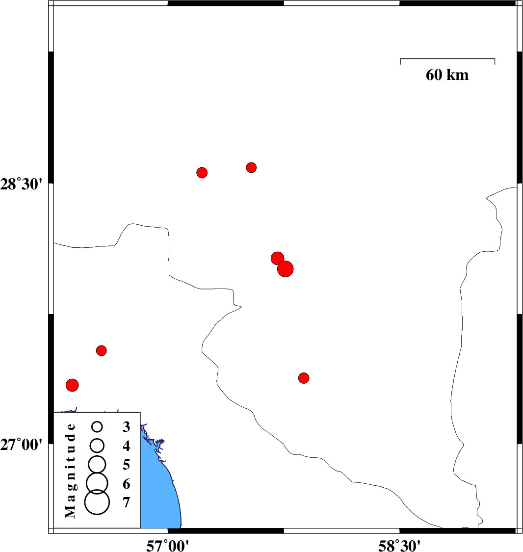 | 2012/08/31 | 09:30:46.1 | 14:00:46.1 | 27.54 | 56.57 | 14 | ML3 | Hormozgan Province, 49 km North-East of Bandar-e abbas | ||