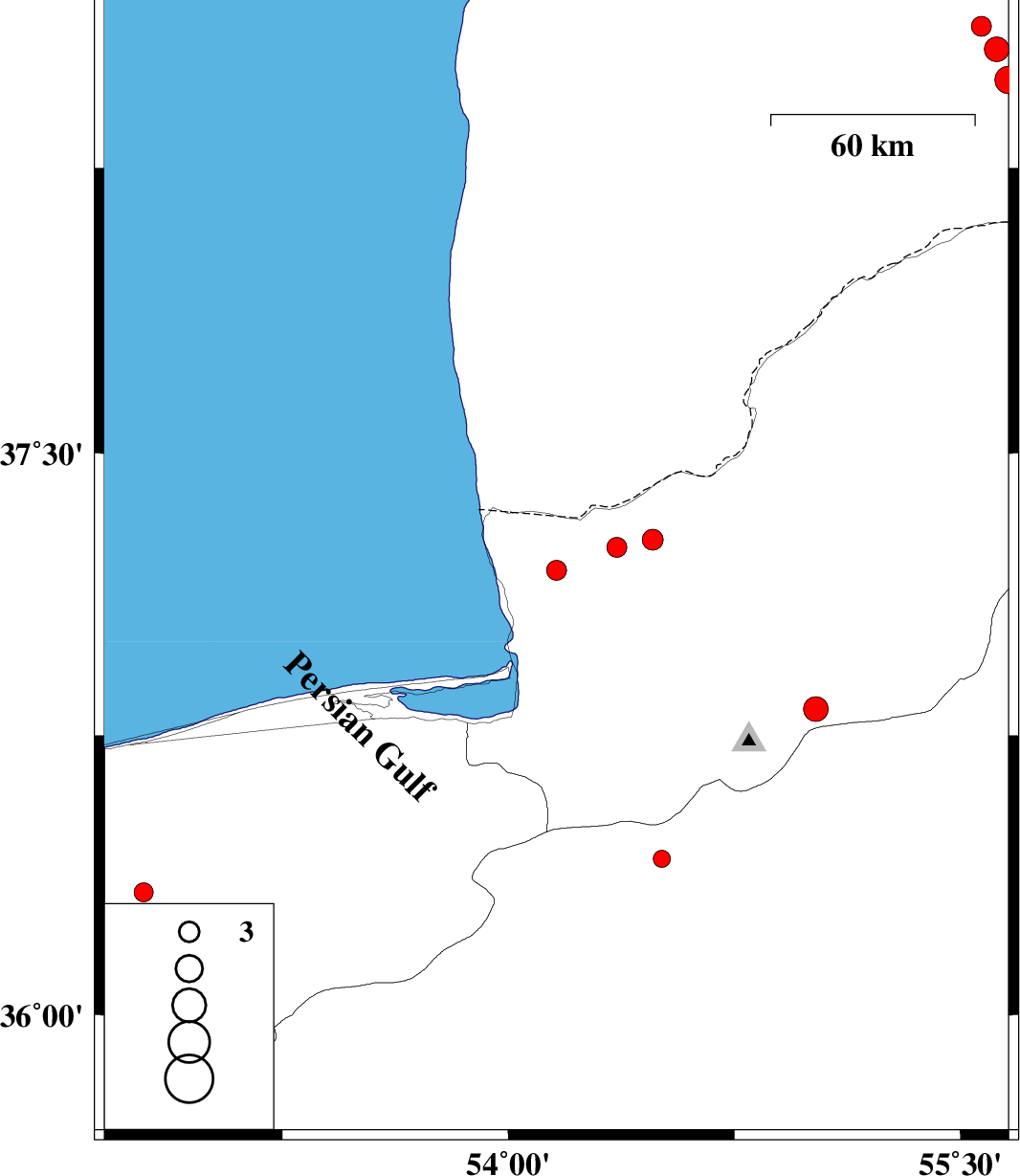 | 2012/09/03 | 21:26:43.6 | 01:56:43.6 | 37.25 | 54.36 | 18 | ML3 | Golestan Province, 28 km North of Aq Qaleh | ||