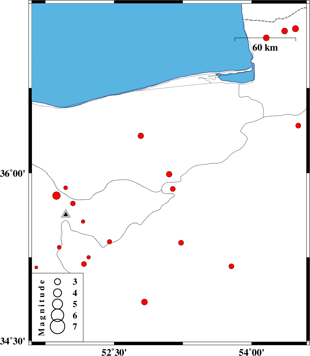 | 2012/09/03 | 12:14:51.1 | 16:44:51.1 | 36.33 | 52.79 | 36 | ML2.8 | Mazandaran Province, 16 km South of Qaemshahr | ||