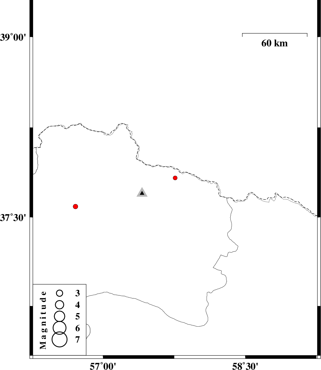 | 2012/09/16 | 06:02:03.5 | 10:32:03.5 | 37.59 | 56.71 | 34 | ML2.3 | Khorasan(north) Province, 21 km West of Ashkhaneh |