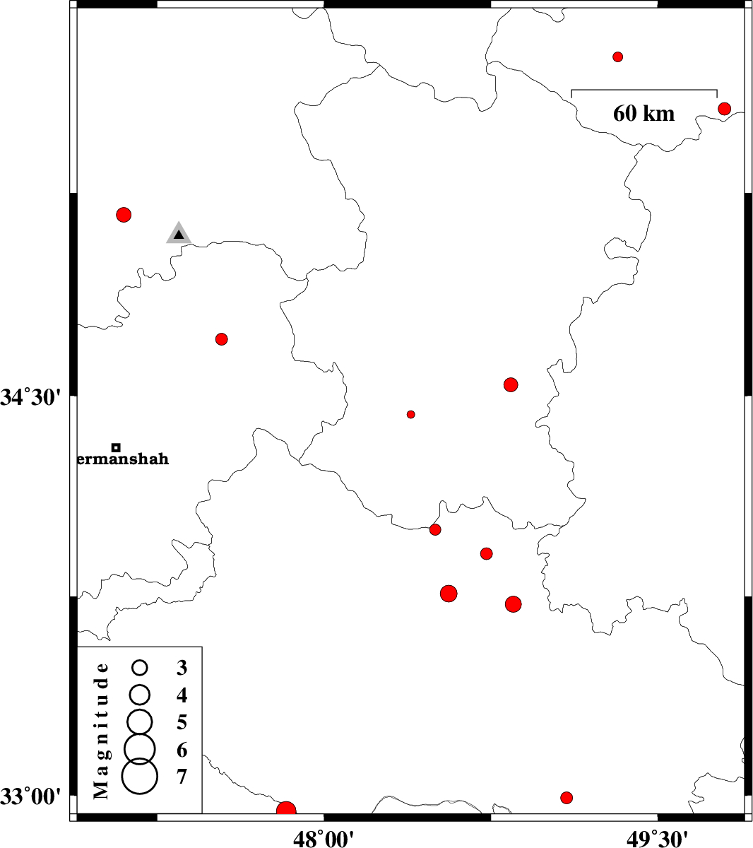 | 2012/09/10 | 15:50:18.2 | 20:20:18.2 | 34.71 | 47.54 | 15 | ML2.4 | Kermanshah Province, 10 km Sonqor | ||