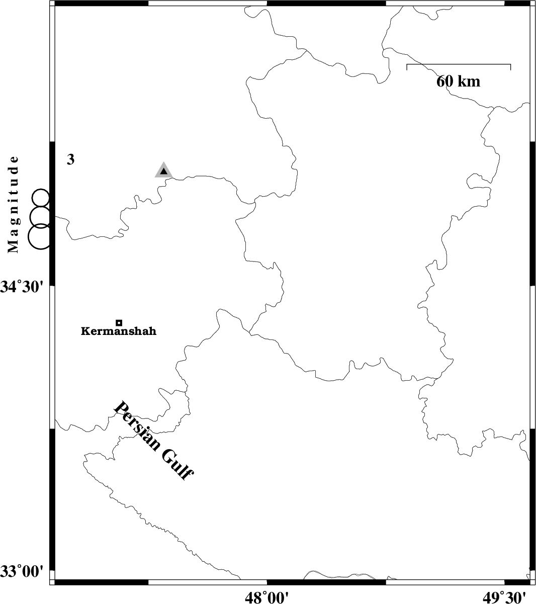 | 2012/09/19 | 11:59:40.4 | 16:29:40.4 | 33.56 | 47.31 | 14 | ML3.8 | Lorestan Province, 28 km West of Kuhdasht | ||