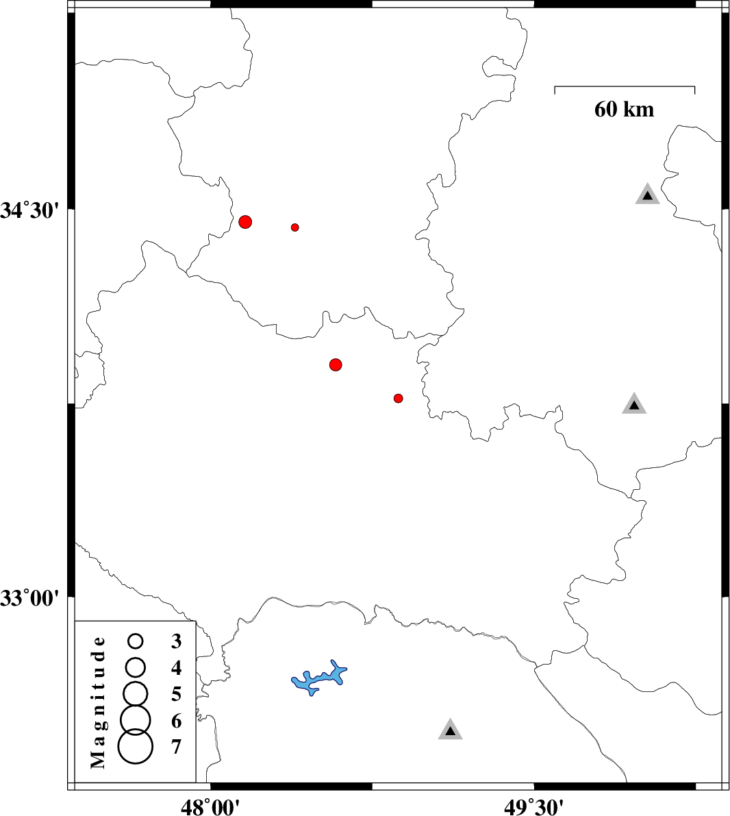 | 2012/09/24 | 10:30:09.2 | 14:00:09.2 | 33.77 | 48.87 | 18 | ML1.9 | Lorestan Province, 18 km South-East of Borujerd | ||