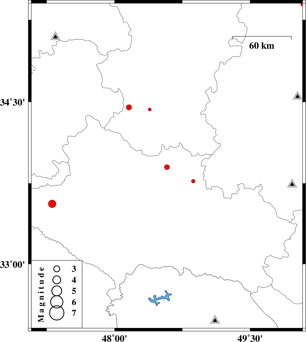 | 2012/09/24 | 10:30:09.2 | 14:00:09.2 | 33.77 | 48.87 | 18 | ML1.9 | Lorestan Province, 18 km South-East of Borujerd | ||