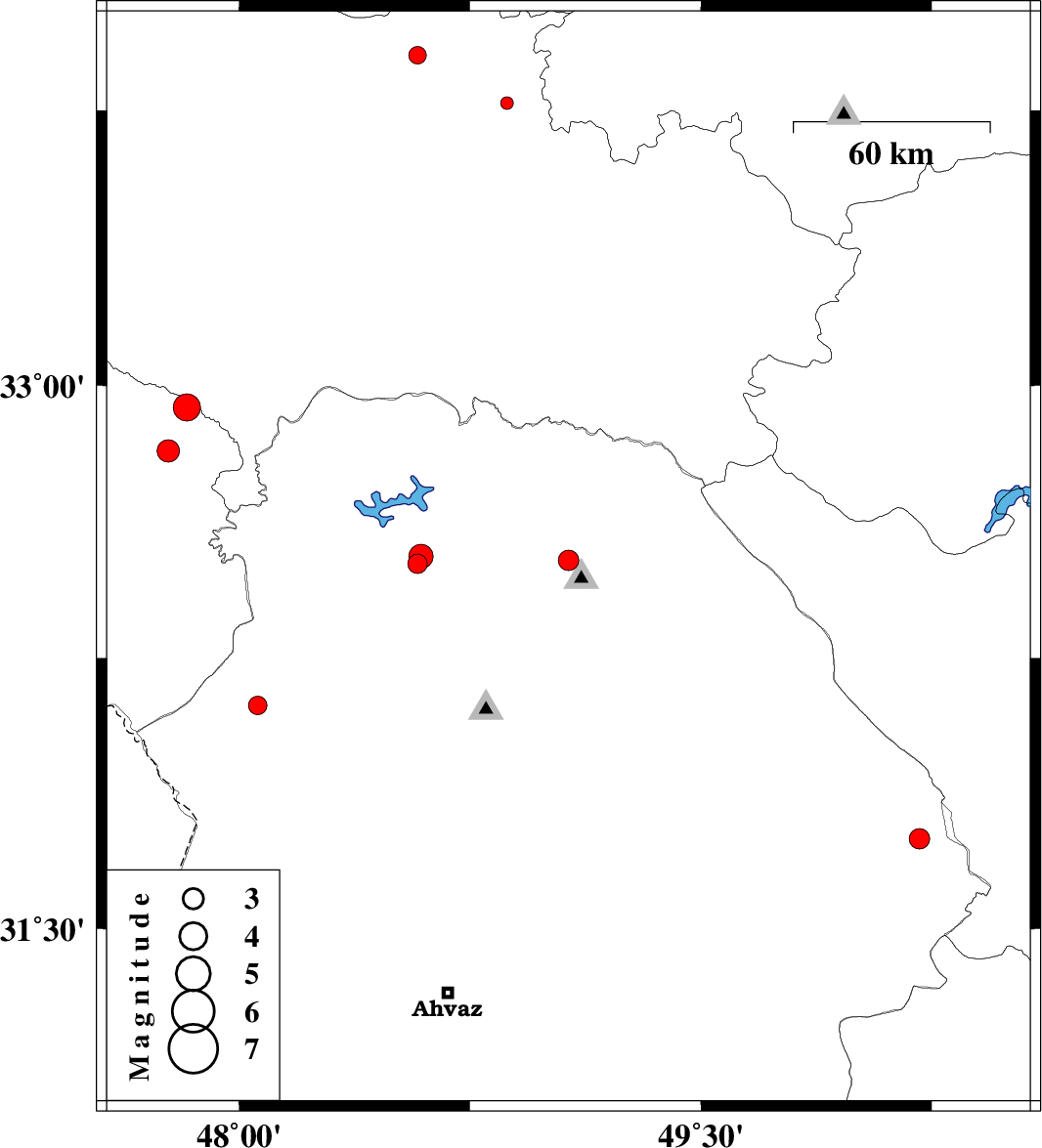 | 2012/09/07 | 16:06:45.4 | 20:36:45.4 | 32.53 | 48.59 | 14 | ML3.5 | Khoozestan Province, 24 km East of Andimeshk | ||