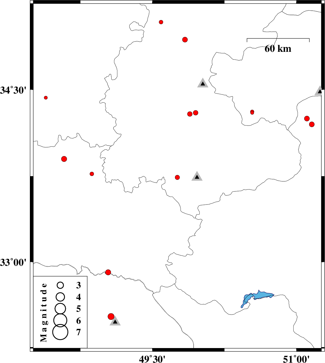 | 2012/09/24 | 10:30:09.2 | 14:00:09.2 | 33.77 | 48.87 | 18 | ML1.9 | Lorestan Province, 18 km South-East of Borujerd | ||