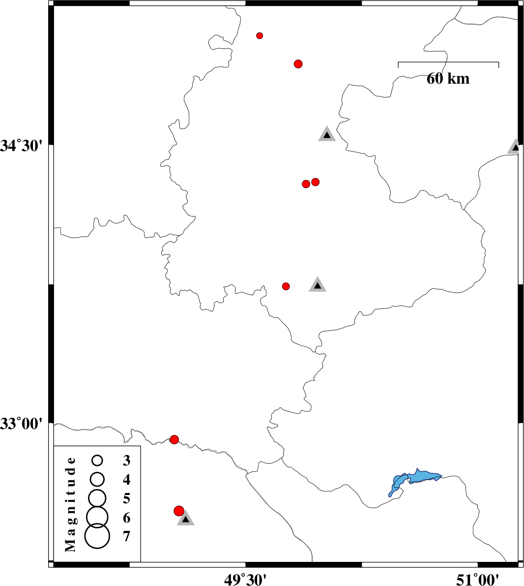 | 2012/09/29 | 22:23:05.6 | 01:53:05.6 | 34.3 | 49.95 | 11 | ML2.3 | Markazi Province, 26 km South of Ashtiyan | ||