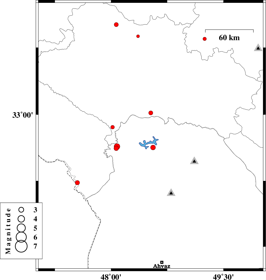 | 2012/10/02 | 20:42:51.6 | 00:12:51.6 | 32.75 | 48.53 | 15 | ML2.2 | Khoozestan Province, 36 km North-East of Andimeshk | ||