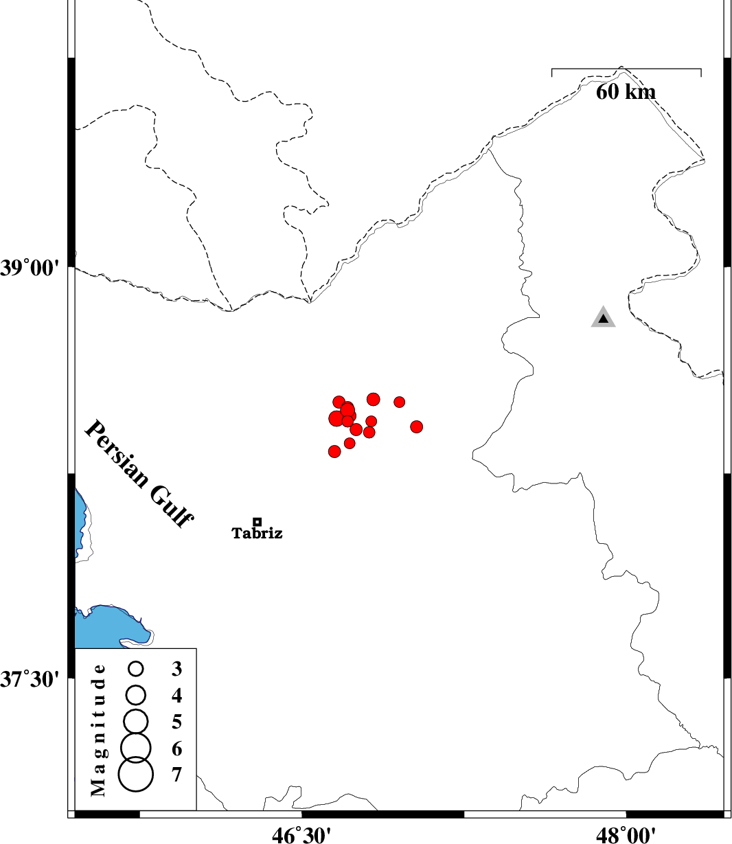 | 2012/10/06 | 16:35:33.3 | 20:05:33.3 | 38.48 | 46.71 | 17 | ML3 | Azarbaijan Sharghi Province, 32 km West of Ahar | ||