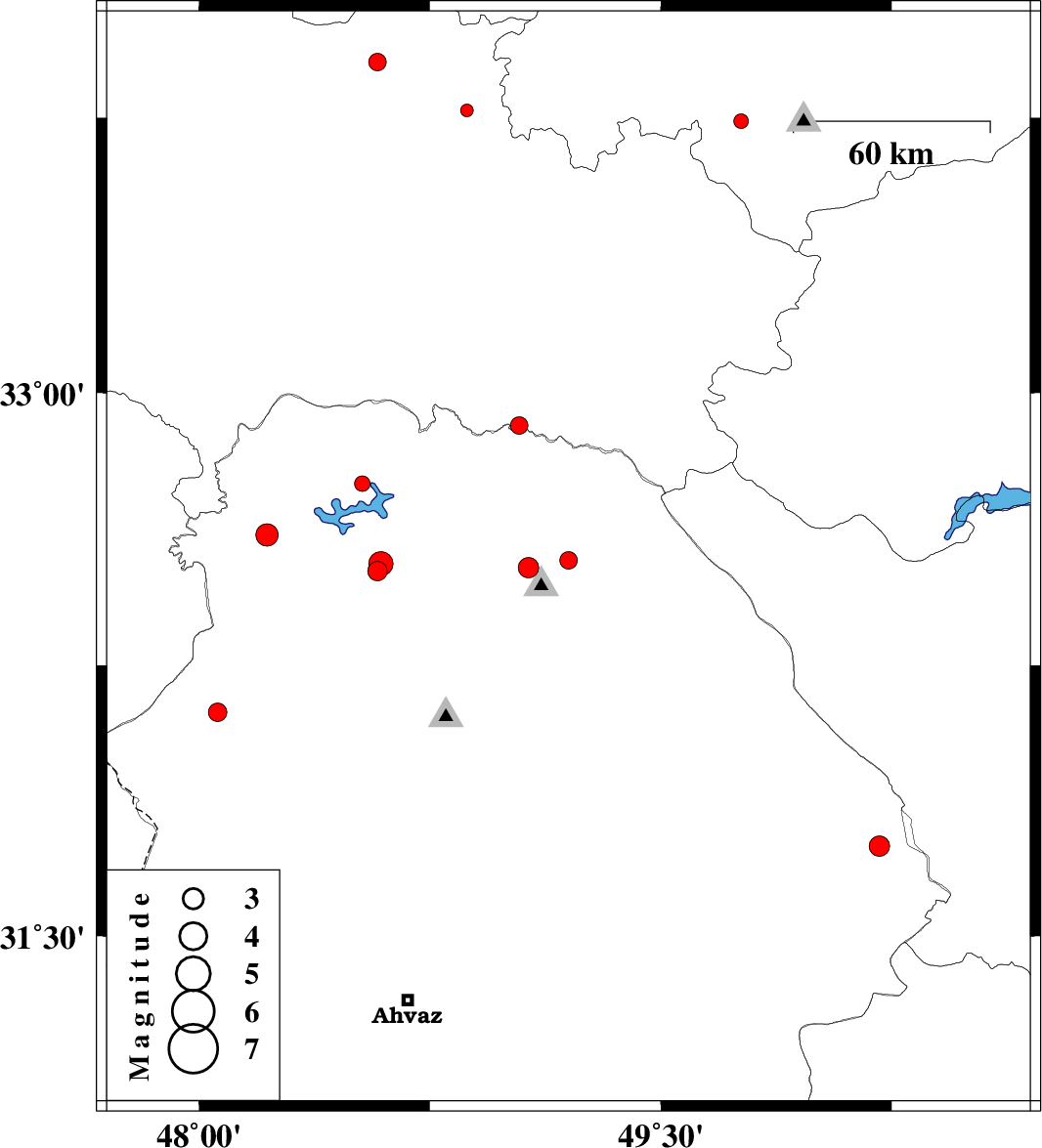 | 2012/09/07 | 16:06:45.4 | 20:36:45.4 | 32.53 | 48.59 | 14 | ML3.5 | Khoozestan Province, 24 km East of Andimeshk |