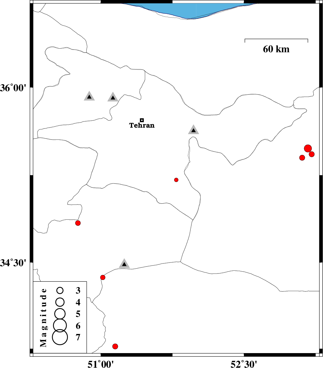 | 2012/10/15 | 03:54:45.8 | 07:24:45.8 | 35.21 | 51.79 | 26 | ML1.8 | Tehran Province, 17 km South-East of Varamin | ||