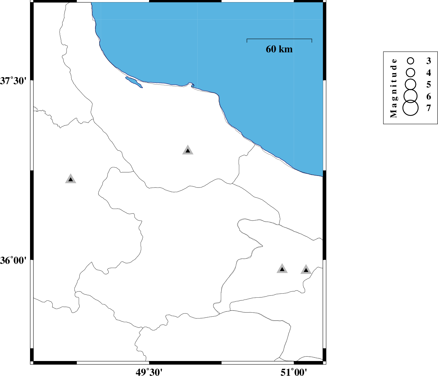 | 2012/10/16 | 18:32:14.4 | 22:02:14.4 | 36.64 | 49.8 | 14 | ML2.3 | Gilan Province, 39 km South-East of Rudbar |
