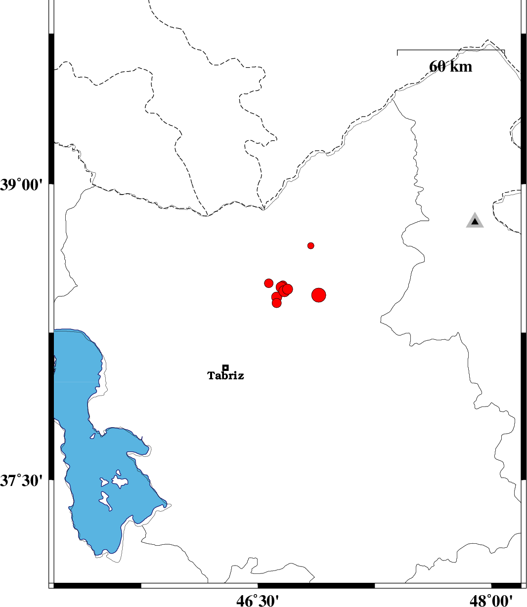 | 2012/10/11 | 05:48:56.1 | 09:18:56.1 | 38.43 | 46.62 | 14 | ML2.9 | Azarbaijan Sharghi Province, 40 km West of Ahar |