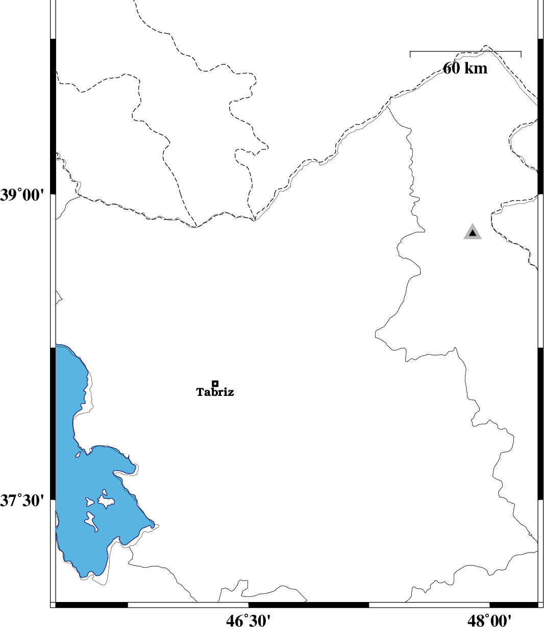 | 2012/10/15 | 23:34:17.0 | 03:04:17.0 | 38.69 | 46.84 | 14 | ML1.9 | Azarbaijan Sharghi Province, 27 km South-West of Kaleybar | ||