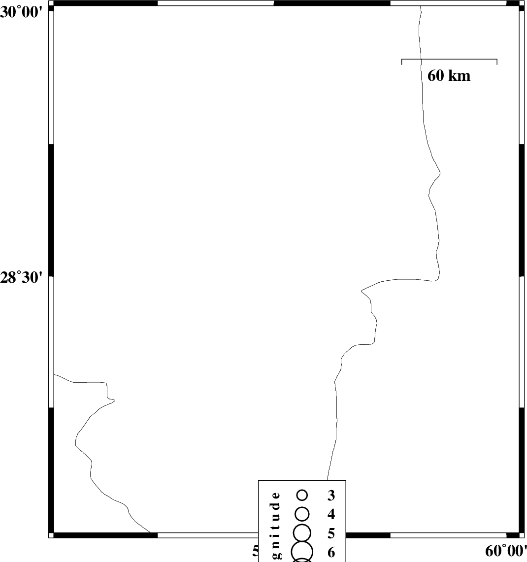 | 2012/10/29 | 10:51:00.2 | 14:21:00.2 | 28.53 | 58.58 | 14 | ML4.3 | Kerman Province, 68 km South-East of Bam |