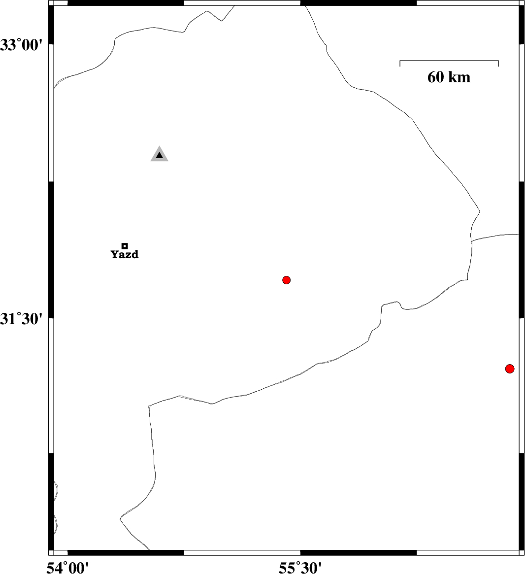 | 2012/10/30 | 10:46:31.8 | 14:16:31.8 | 31.71 | 55.41 | 14 | ML2.2 | Yazd Province, 12 km North of Bafq | ||