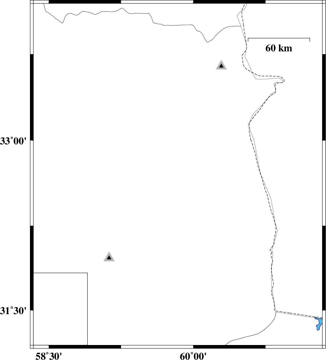 | 2012/10/30 | 19:18:29.7 | 22:48:29.7 | 32.69 | 59.84 | 42 | ML2.9 | Khorasan(south) Province, 9 km Sarbisheh |