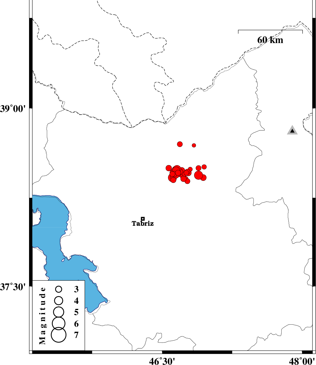 | 2012/10/09 | 02:09:41.5 | 05:39:41.5 | 38.46 | 46.78 | 14 | ML3 | Azarbaijan Sharghi Province, 26 km West of Ahar | ||