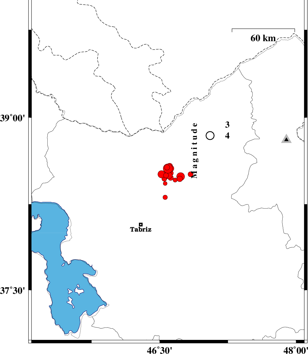 | 2012/11/11 | 04:02:26.0 | 07:32:26.0 | 38.53 | 46.59 | 16 | ML3.2 | Azarbaijan Sharghi Province, 43 km West of Ahar | ||