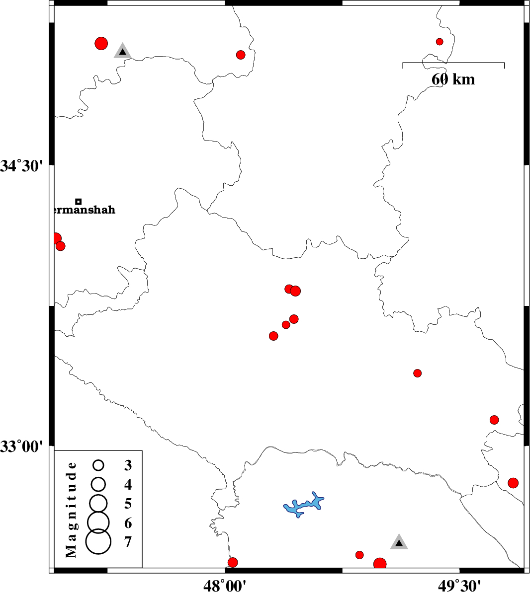 | 2012/11/23 | 01:01:23.6 | 04:31:23.6 | 33.83 | 48.45 | 17 | ML3 | Lorestan Province, 14 km East of Aleshtar | ||