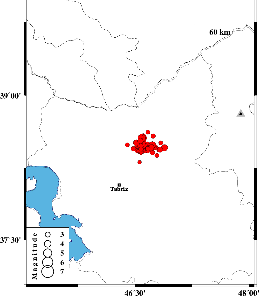 | 2012/11/20 | 16:19:55.3 | 19:49:55.3 | 38.45 | 46.58 | 14 | ML3 | Azarbaijan Sharghi Province, 44 km West of Ahar | ||