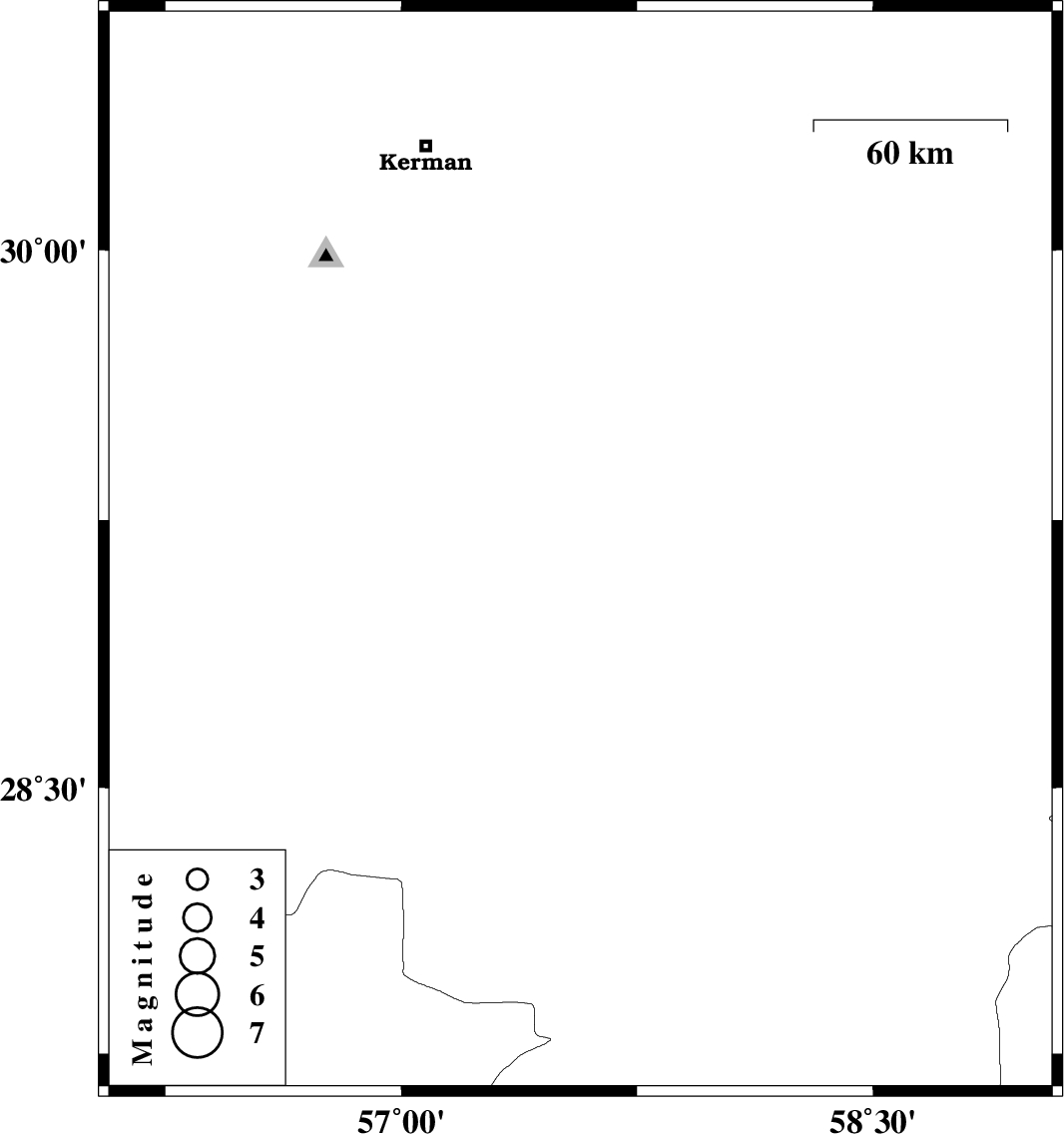 | 2012/11/26 | 09:35:52.9 | 13:05:52.9 | 29.16 | 57.57 | 18 | ML3.2 | Kerman Province, 57 km North-West of Jiroft |