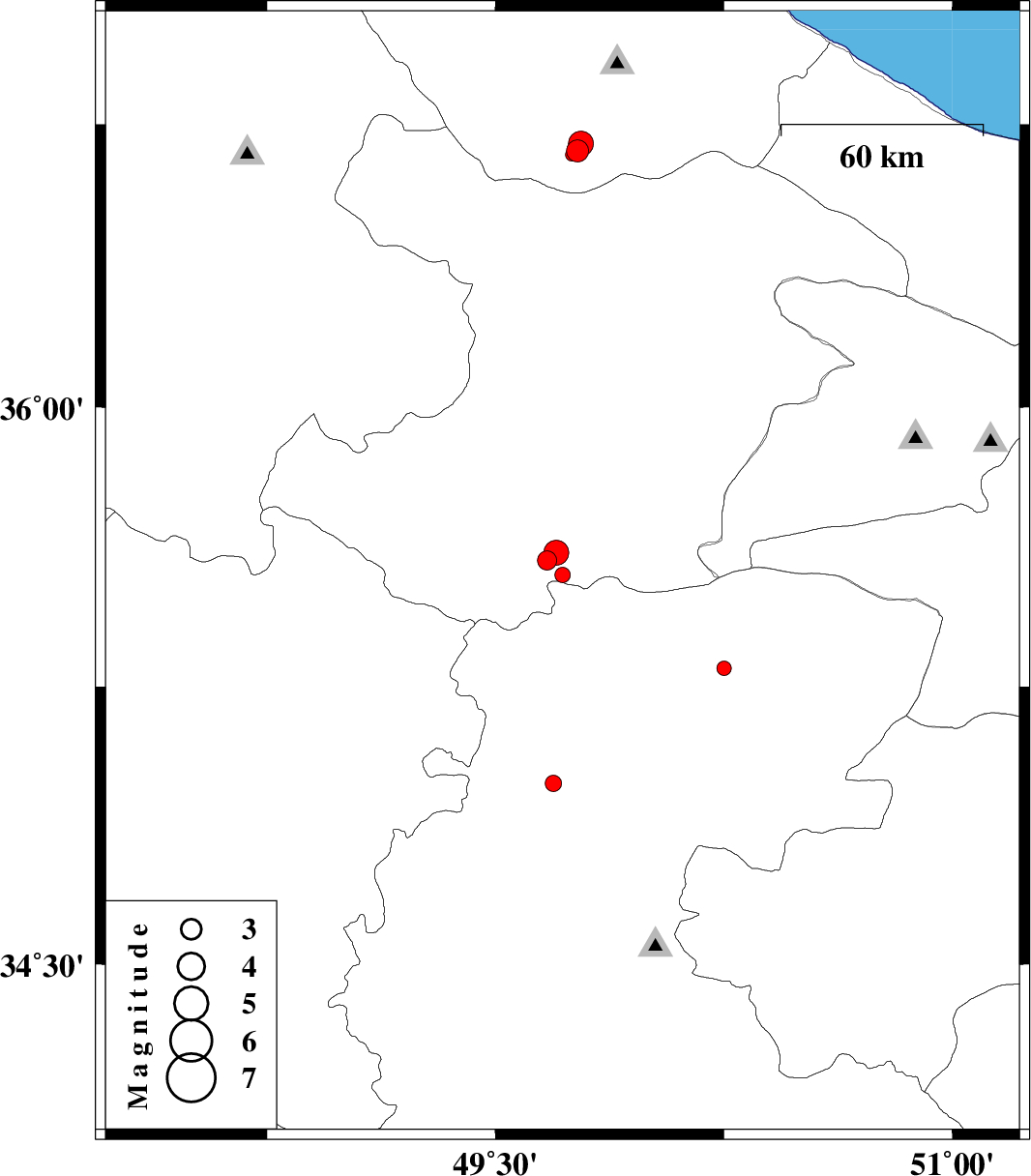 | 2012/11/18 | 02:16:45.8 | 05:46:45.8 | 36.67 | 49.75 | 30 | ML1.9 | Gilan Province, 33 km South-East of Rudbar |