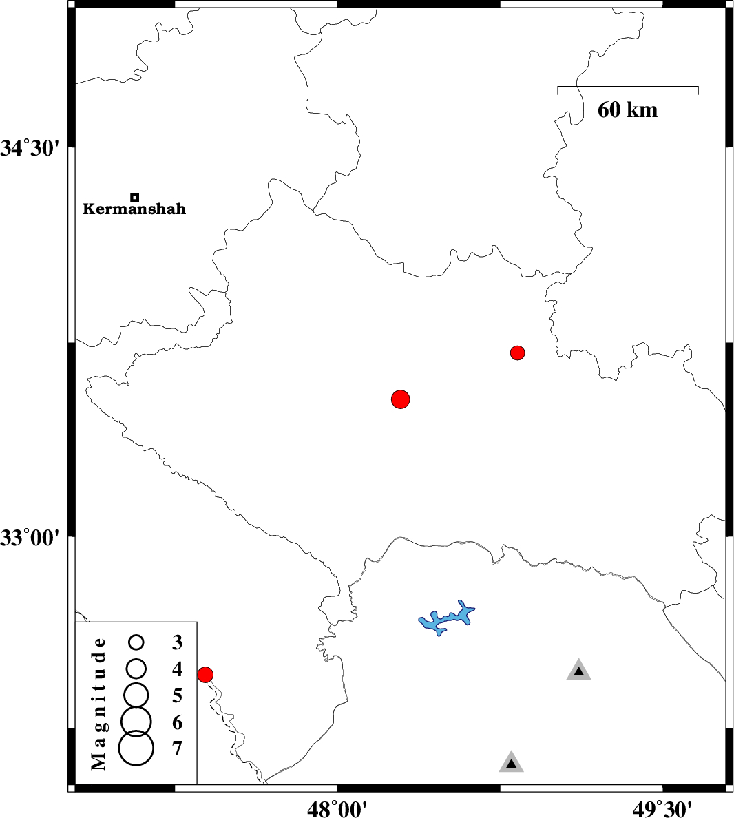 | 2012/12/12 | 02:13:30.5 | 05:43:30.5 | 32.46 | 47.39 | 36 | ML3.2 | 28 km South-East of Dehloran |