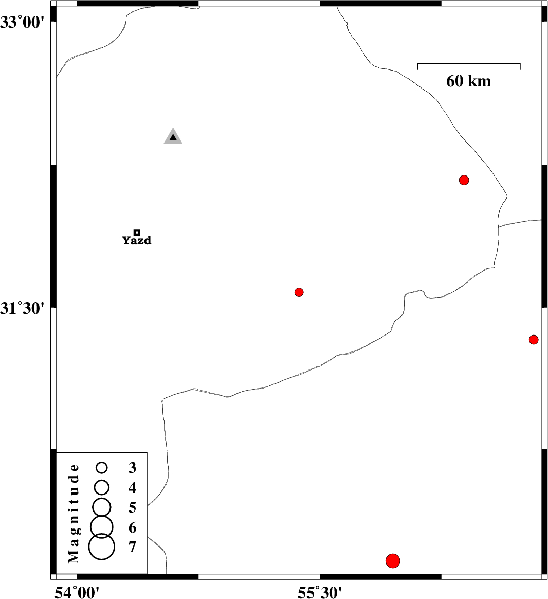 | 2012/12/13 | 13:59:12.9 | 17:29:12.9 | 32.17 | 56.39 | 14 | ML2.7 | Yazd Province, 108 km North-West of Ravar |