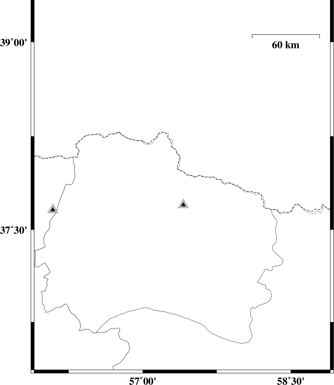 | 2012/12/23 | 16:30:58.7 | 20:00:58.7 | 37.84 | 57.4 | 6 | ML3.1 | Khorasan(north) Province, 41 km North of Bojnurd | ||