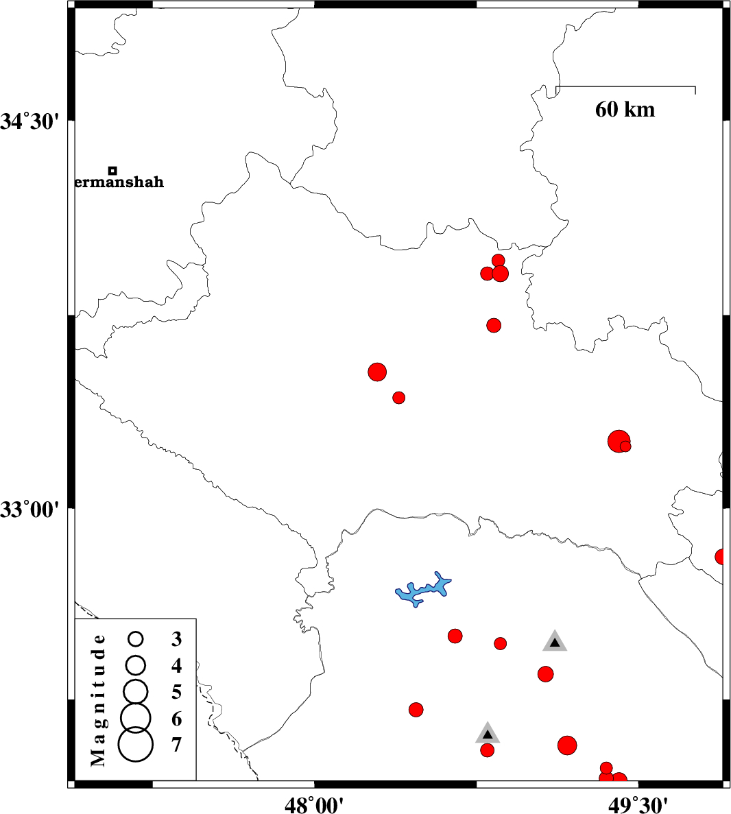 | 2012/12/12 | 02:13:30.5 | 05:43:30.5 | 32.46 | 47.39 | 36 | ML3.2 | 28 km South-East of Dehloran | ||