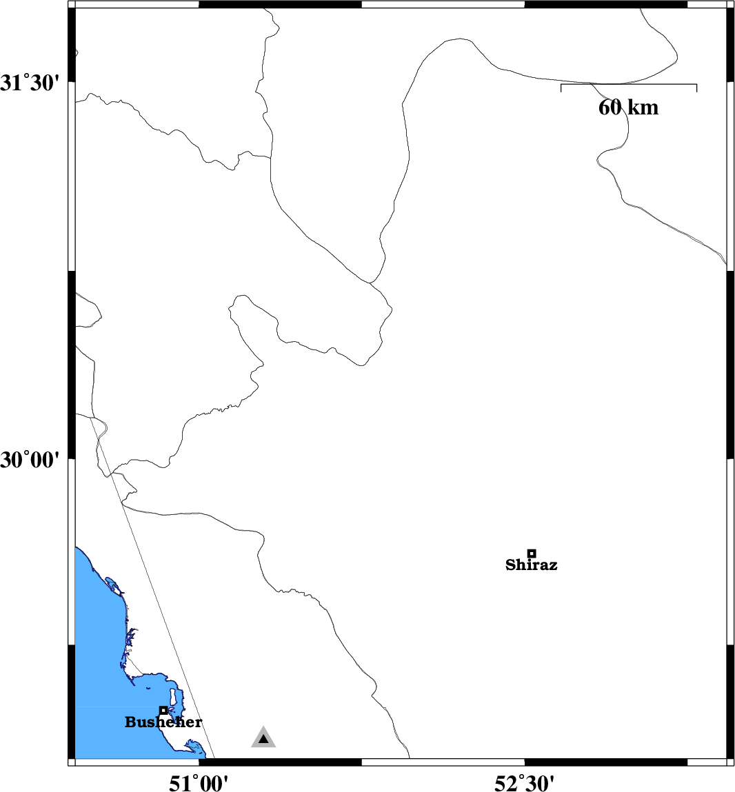 | 2013/01/01 | 08:35:41.1 | 12:05:41.1 | 29.3 | 51.35 | 9 | ML3.5 | Bushehr Province, 15 km East of Borazjan |