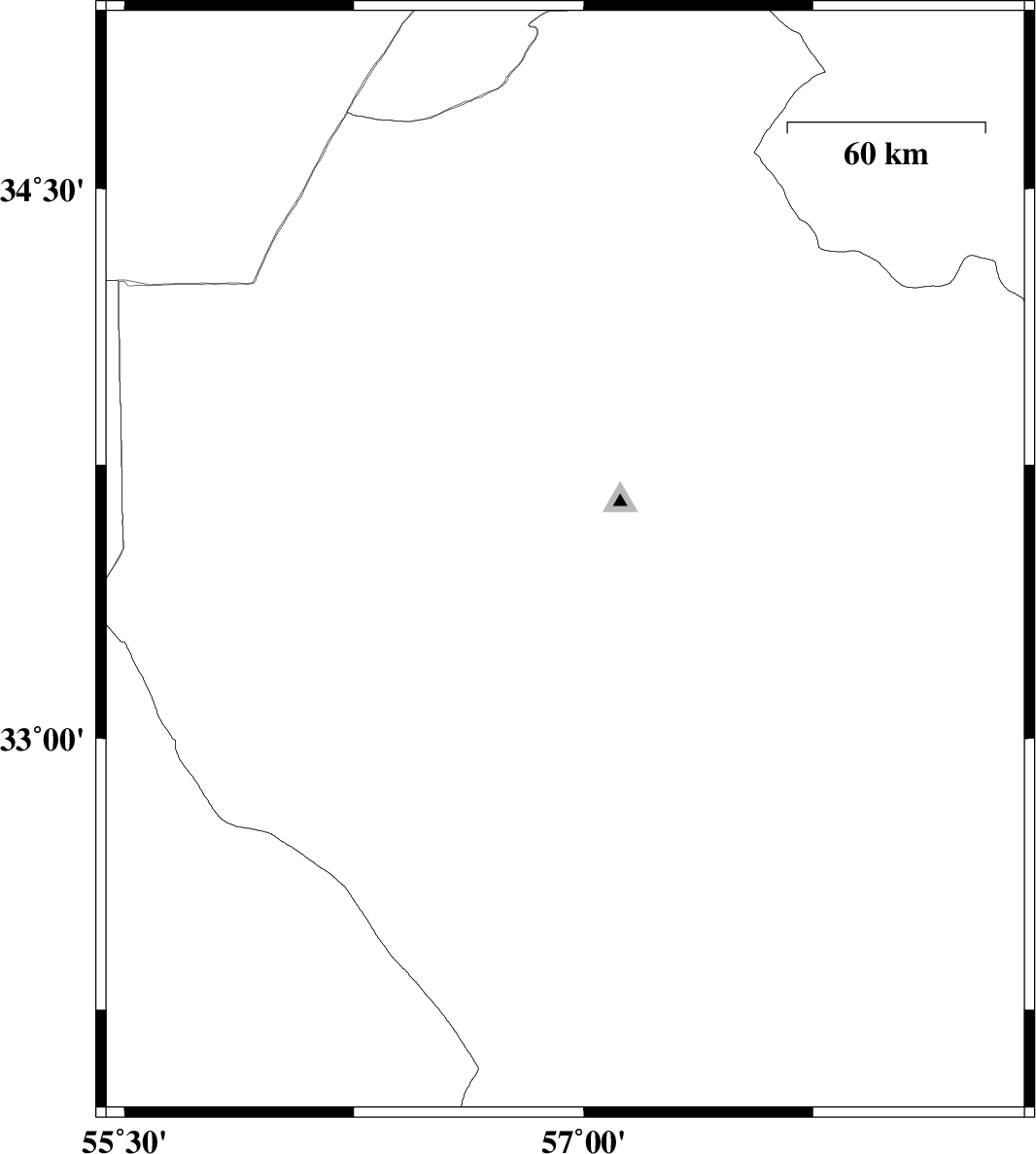 | 2013/01/15 | 19:04:13.2 | 22:34:13.2 | 33.42 | 57.42 | 14 | ML3.2 | Yazd Province, 50 km South-East of Tabas | ||