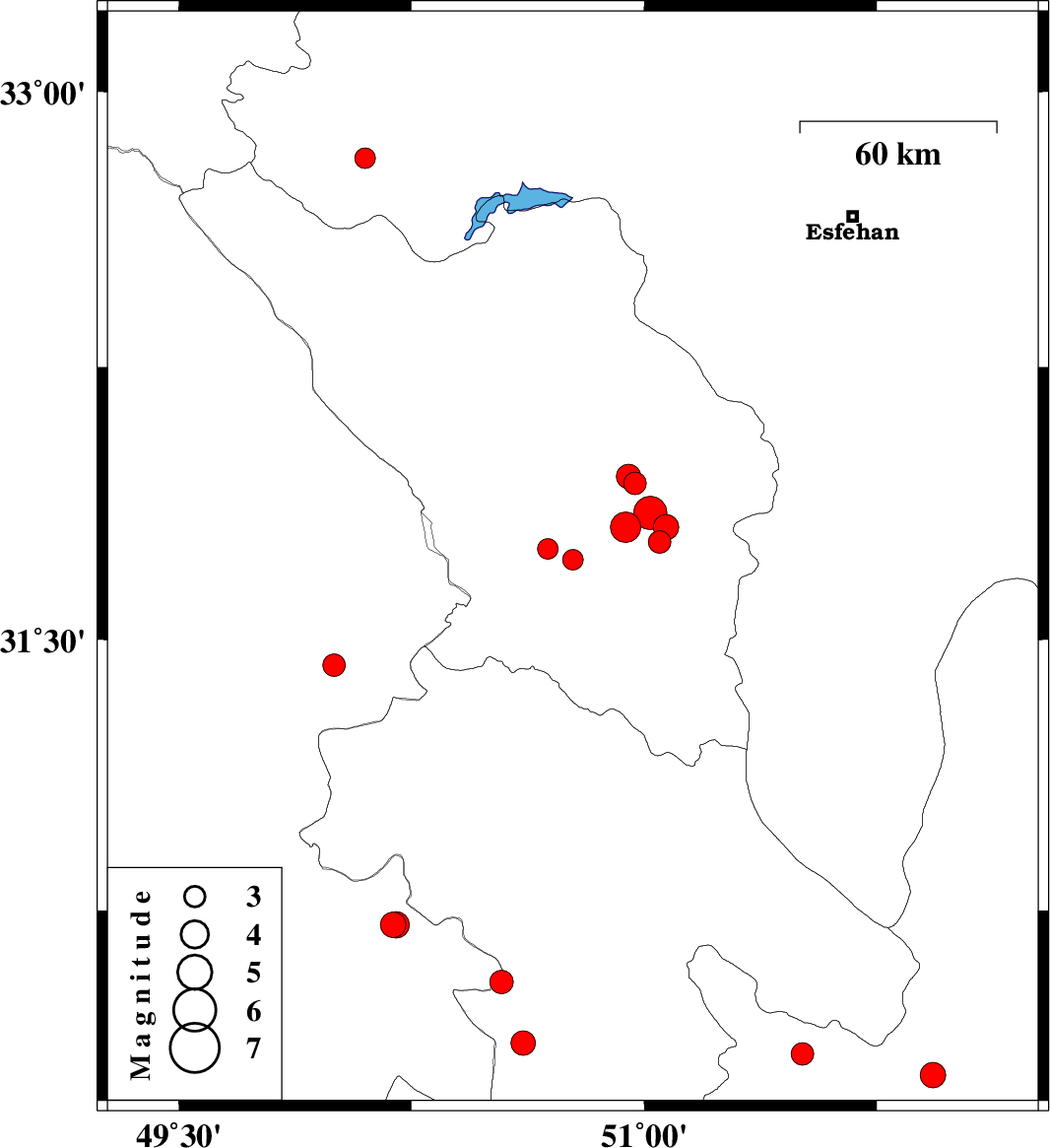 | 2013/01/10 | 18:32:55.4 | 22:02:55.4 | 32.82 | 50.1 | 17 | ML3 | Esfahan Province, 13 km South of Fereydunshahr | ||