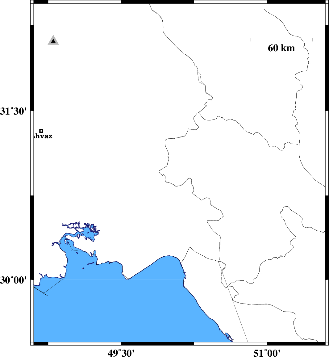| 2013/01/21 | 18:07:01.1 | 21:37:01.1 | 31.43 | 50 | 15 | ML3.3 | Khoozestan Province, 14 km East of Bagh Malek | ||