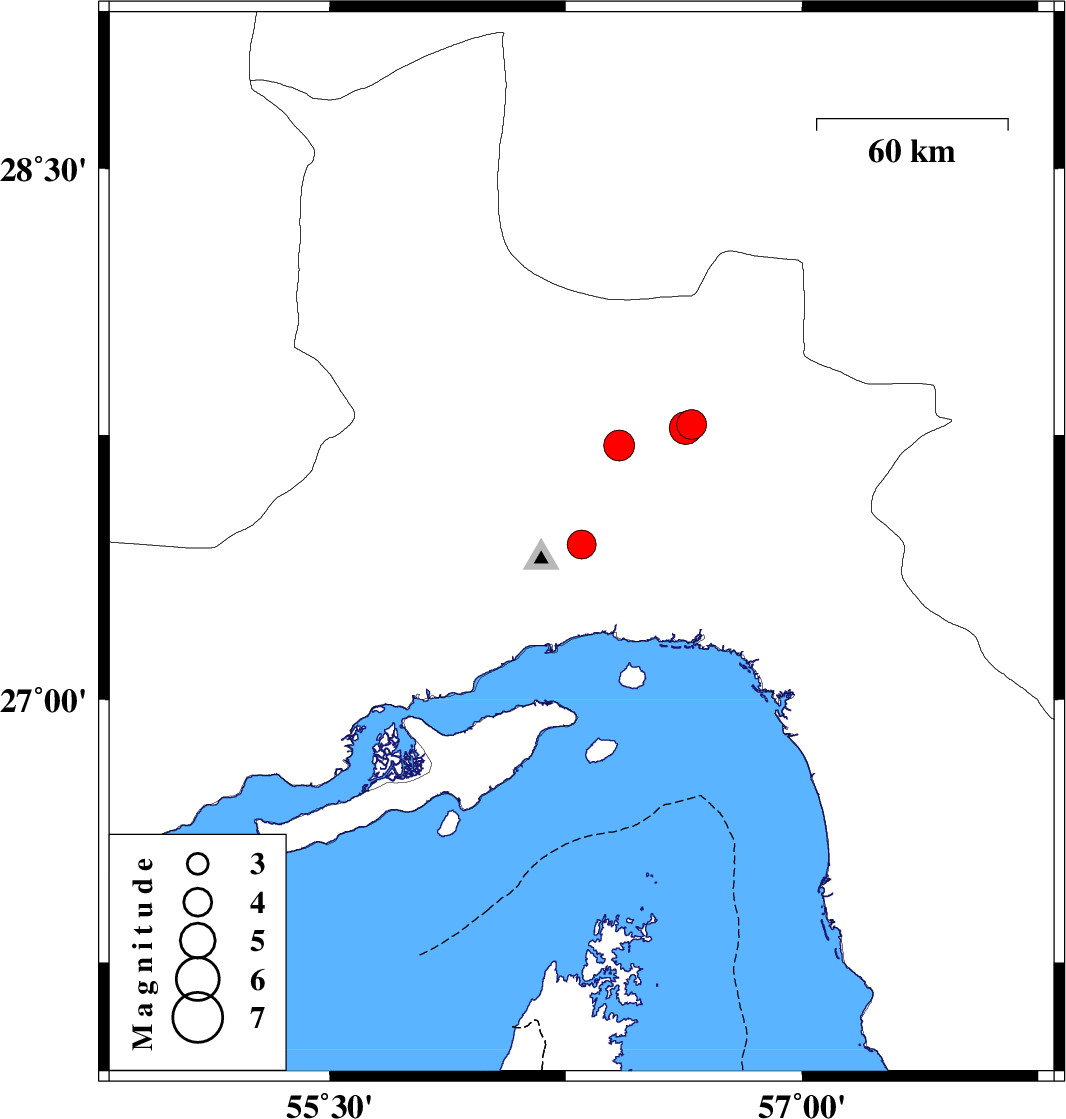 | 2013/02/07 | 13:42:09.1 | 17:12:09.1 | 27.44 | 56.3 | 15 | ML4.1 | Hormozgan Province, 29 km North of Bandar-e abbas | ||