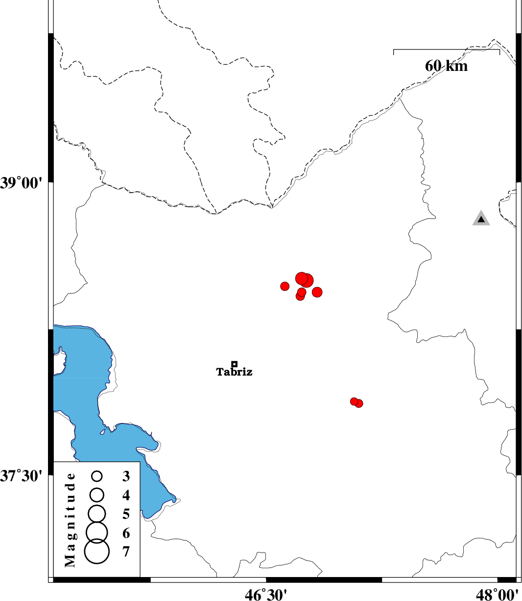 | 2013/02/08 | 19:25:57.1 | 22:55:57.1 | 37.87 | 47.1 | 14 | ML2.4 | Azarbaijan Sharghi Province, 23 km East of Bostanabad |