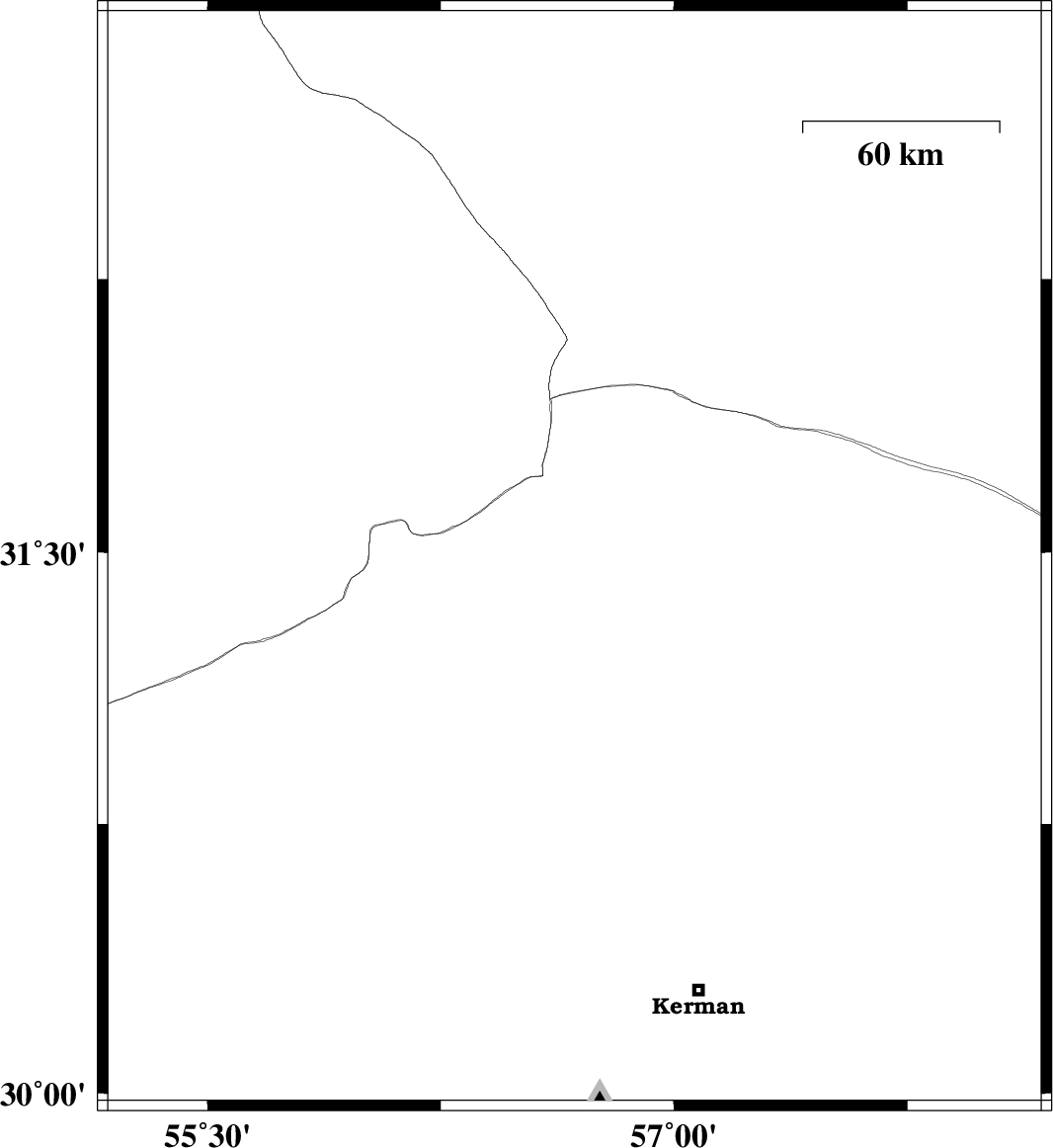 | 2013/01/24 | 11:40:23.1 | 15:10:23.1 | 30.76 | 56.93 | 18 | ML3.2 | Kerman Province, 35 km East of Zarand | ||