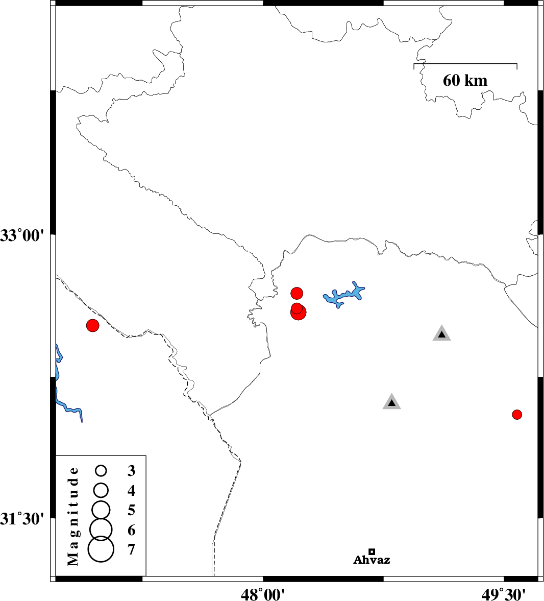 | 2013/02/19 | 17:45:07.4 | 21:15:07.4 | 32.05 | 49.58 | 14 | ML2.7 | Khoozestan Province, 29 km North-East of Masjed Soleyman | ||