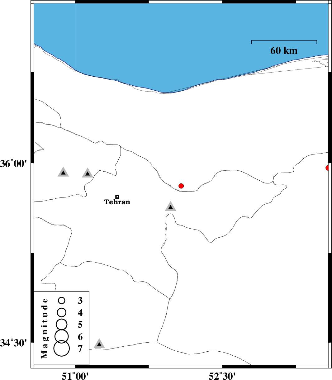| 2013/02/15 | 23:42:43.8 | 03:12:43.8 | 35.96 | 53.58 | 15 | ML2.4 | Semnan Province, 46 km North-East of Semnan |