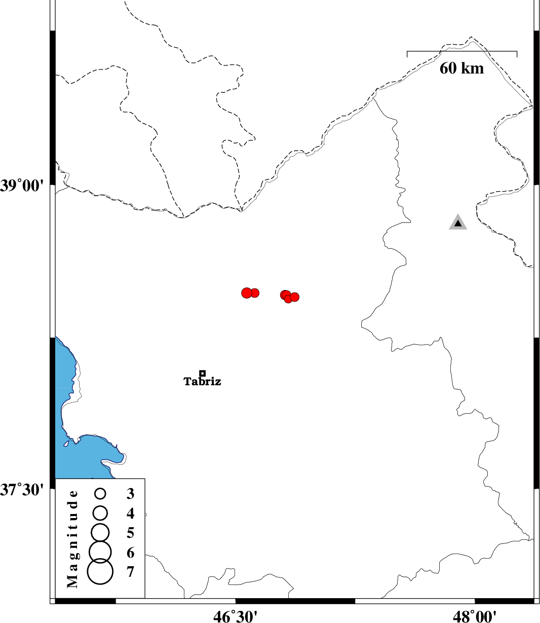 | 2013/02/20 | 10:36:52.9 | 14:06:52.9 | 38.45 | 46.87 | 14 | ML2.6 | Azarbaijan Sharghi Province, 18 km West of Ahar | ||