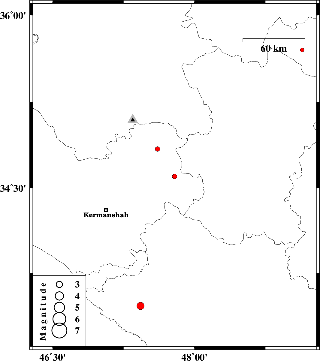 | 2013/02/23 | 19:27:23.6 | 22:57:23.6 | 34.84 | 47.61 | 14 | ML2.3 | Kermanshah Province, 7 km Sonqor |