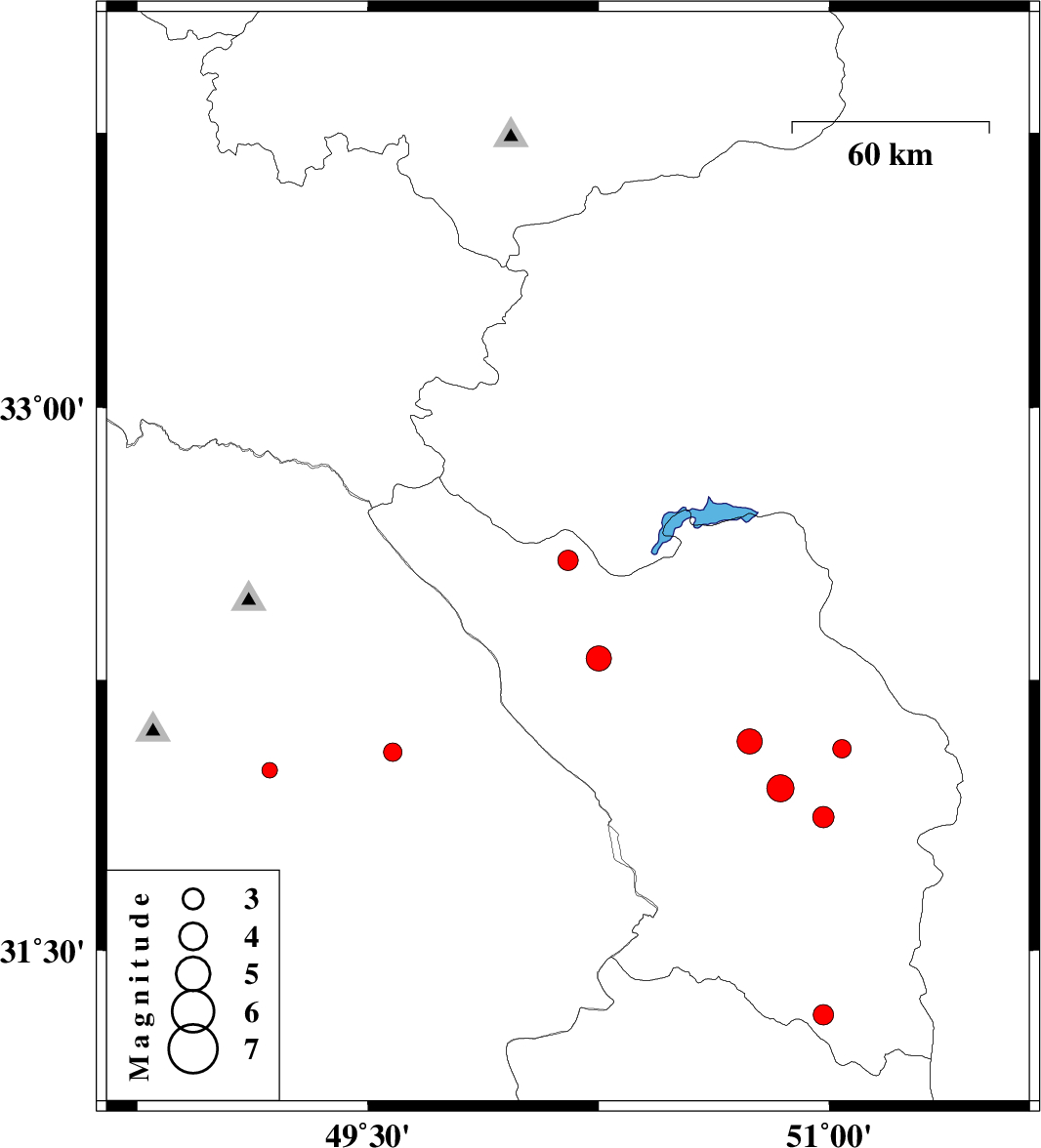| 2013/02/13 | 14:50:56.5 | 18:20:56.5 | 31.32 | 50.98 | 18 | ML2.9 | Chaharmahal Bakhtiari Province, 26 km South-East of Lordegan | ||