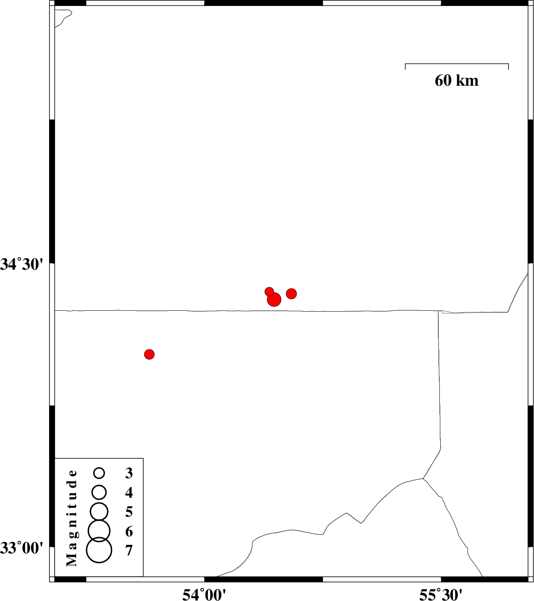 | 2013/03/04 | 09:47:53.7 | 13:17:53.7 | 34.31 | 54.44 | 15 | ML3.9 | Semnan Province, 206 km South of Damghan | ||