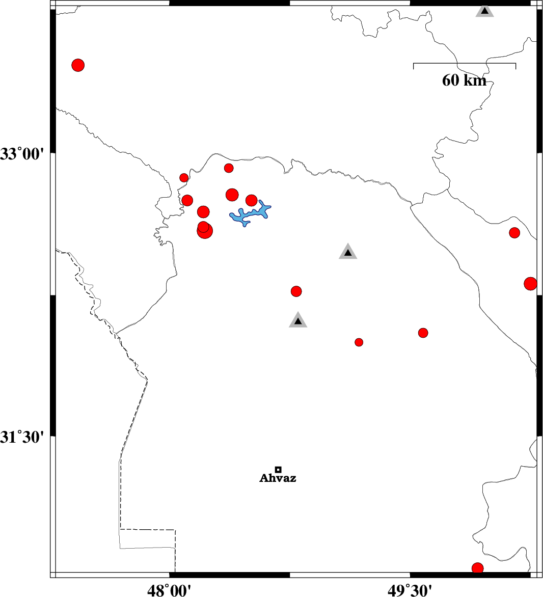 | 2013/02/07 | 10:13:04.9 | 13:43:04.9 | 30.79 | 49.92 | 46 | ML3.3 | Khoozestan Province, 20 km East of Omidiyeh |