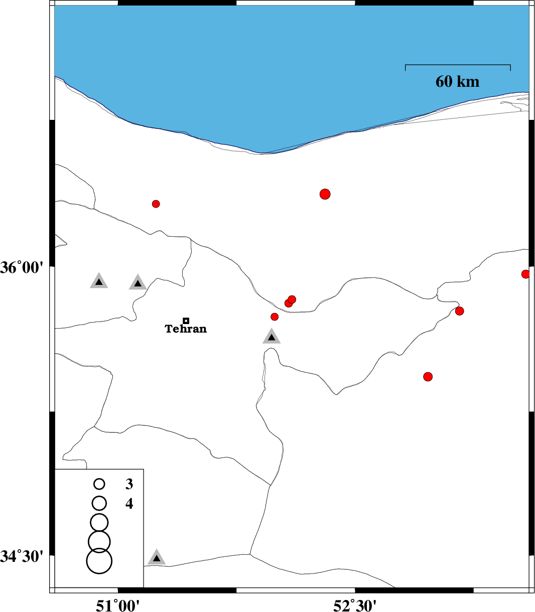 | 2013/02/15 | 23:42:43.8 | 03:12:43.8 | 35.96 | 53.58 | 15 | ML2.4 | Semnan Province, 46 km North-East of Semnan | ||