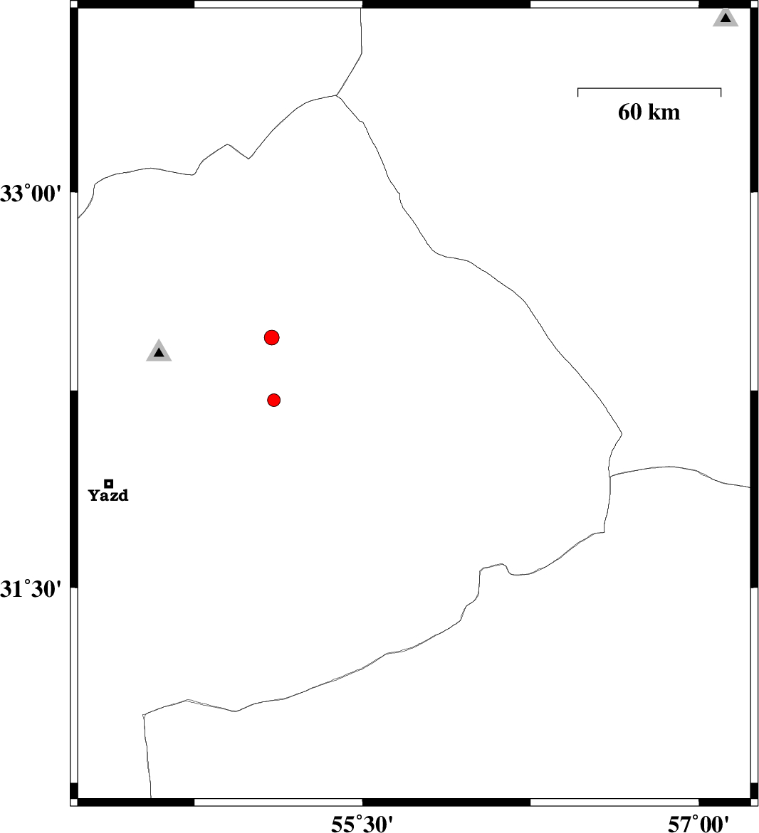 | 2013/03/09 | 13:23:19.8 | 16:53:19.8 | 31.94 | 55.71 | 14 | ML2.2 | Yazd Province, 47 km North-East of Bafq | ||