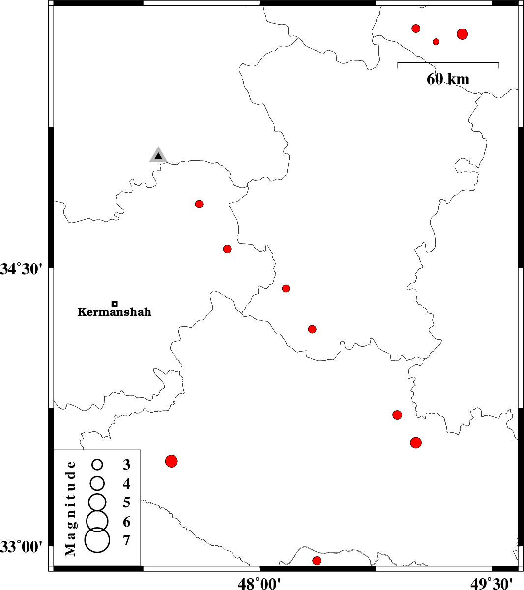 | 2013/02/23 | 19:27:23.6 | 22:57:23.6 | 34.84 | 47.61 | 14 | ML2.3 | Kermanshah Province, 7 km Sonqor | ||