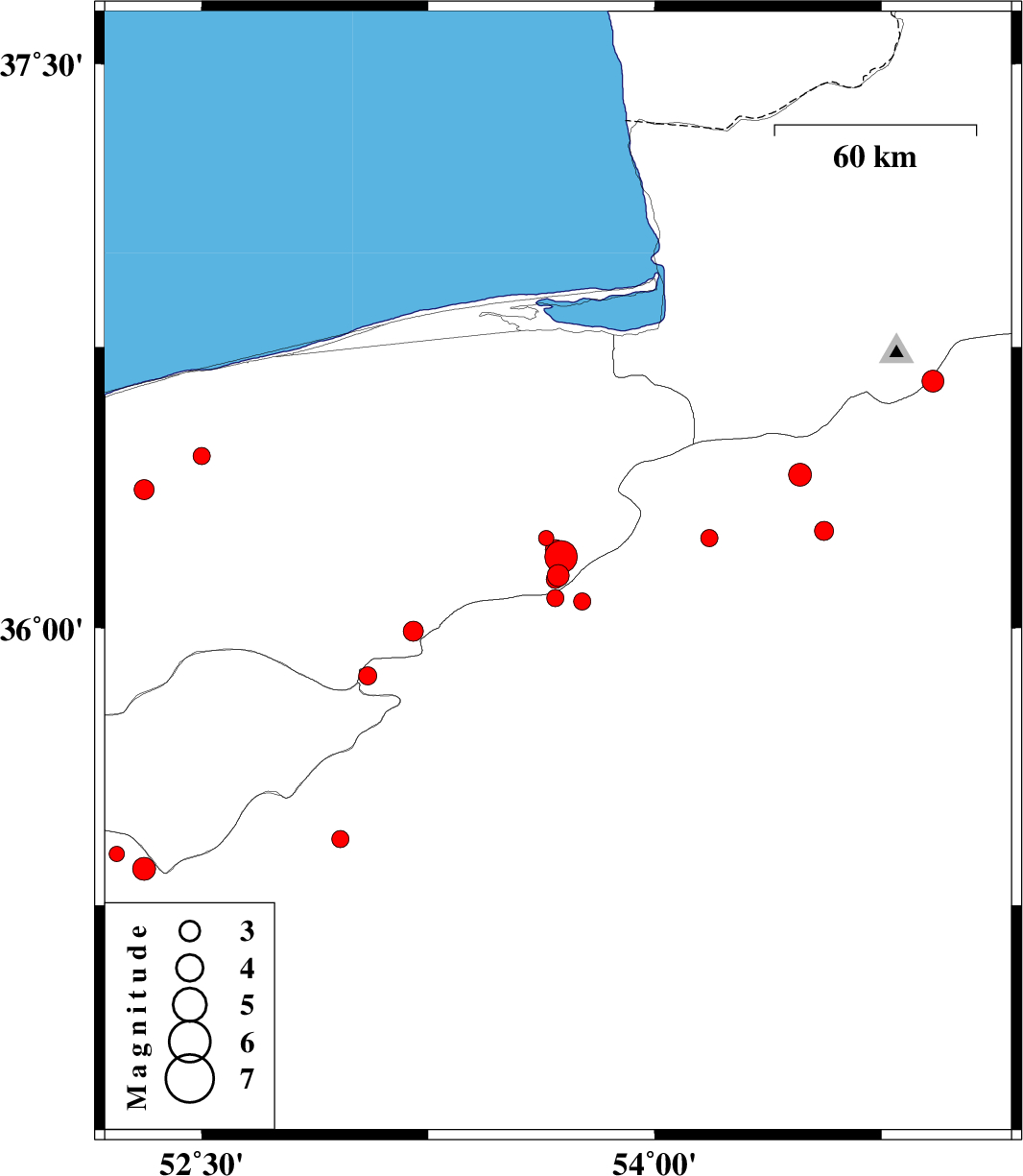 2013/03/21 04:10:38.2 07:40:38.2 36.2453.6414 ML2.2 Mazandaran Province, 51 km South of Behshahr